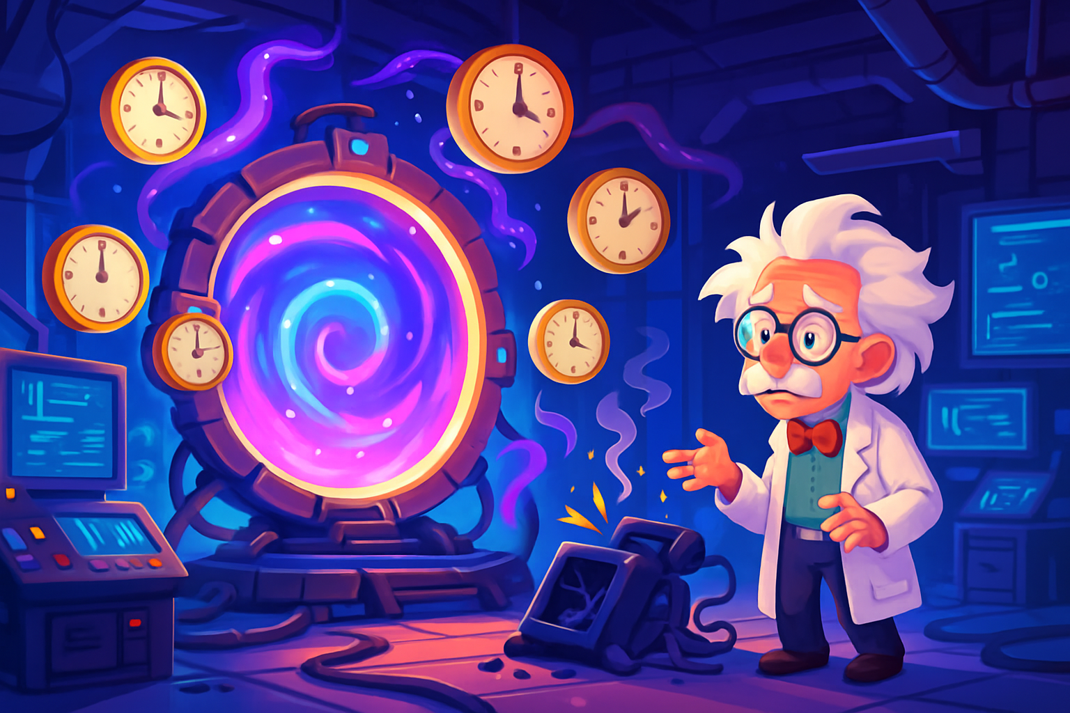 Профессор Хронос изобрел машину времени, но во время испытаний что-то пошло не так!