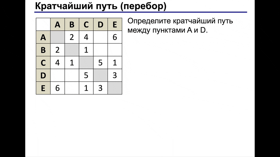 1. ОГЭ-4 Кратчайший путь (перебор)