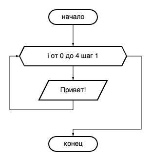 помогает выполнять одну и ту же команду несколько раз. Например, чтобы 5 раз вывести слово "Привет!" с помощью цикла, мы пишем: