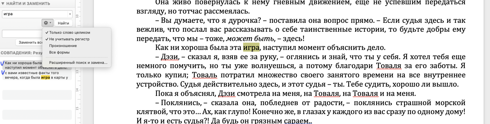 Зафиксируйте общее количество найденных совпадений (включая отдельные слова «игра» и «Игра»).