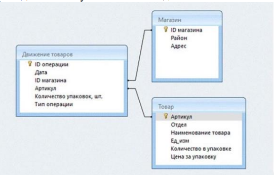 В файле приведён фрагмент базы данных «Хозяйственные товары» о поставках товаров для уборки и дома в магазины районов города. База данных состоит из трёх таблиц.