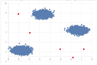 Точки, которые не попадают ни в один из кластеров, являются выбросами. Гарантируется, что таких точек не более 9. Выбросы определяются таким образом, чтобы их количество было минимально возможным.