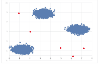 Будем называть центром кластера точку этого кластера, сумма расстояний от которой до всех остальных точек кластера минимальна. Для каждого кластера гарантируется единственность его центра. Расстояние между двумя точками на плоскости 𝐴(𝑥