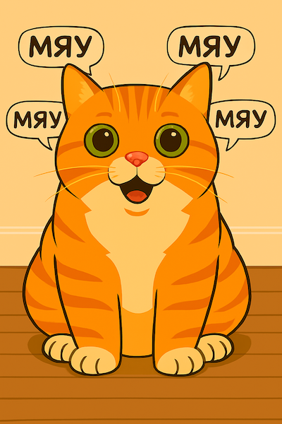 В программе в переменной n хранится количество мяуканей котика. Выведите на экран слово "мяу" n раз, чтобы увидеть наглядно сколько раз котик помяукал.