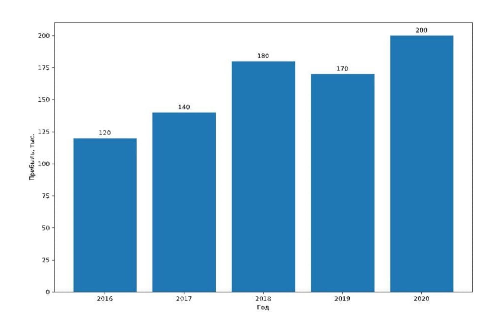 Перед тобой диаграмма, показывающая прибыли компании по производству зерна «Петушкококо» за года с 2016 по 2020.