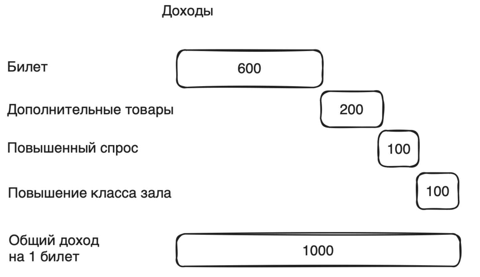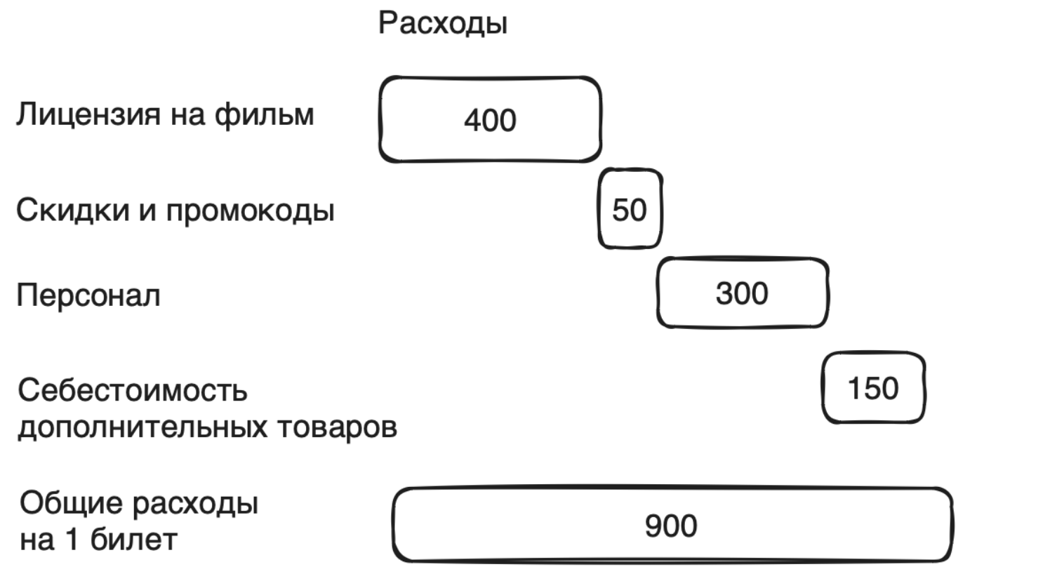 Сеть кинотеатров «Синема» проанализировала средние доходы и расходы от продажи 1 билета в кино: