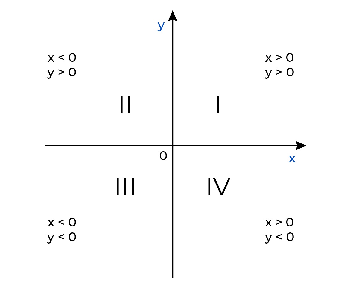 Примечание. Учтите, что точки, лежащие на осях координат, не принято относить к какой-либо координатной четверти.