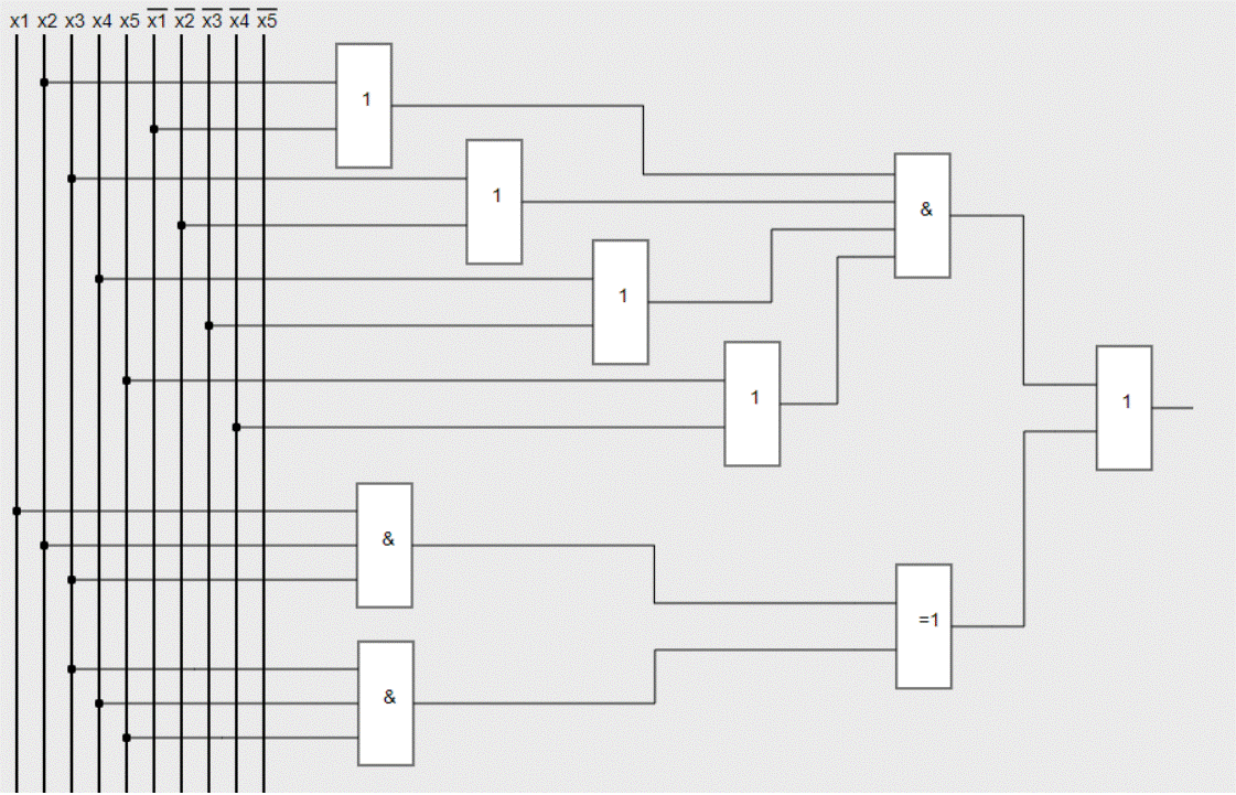 Сколько существует различных наборов значений переменных x1, x2, x3, x4, x5 таких, что в результате будет получено значение 1 (истина)? В ответе укажите число.