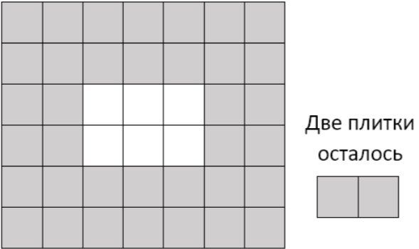 Пояснение к примеру. Площадь имеет размеры 6 Х 7, из 38 плиток можно выложить дорожку шириной в 2 плитки.