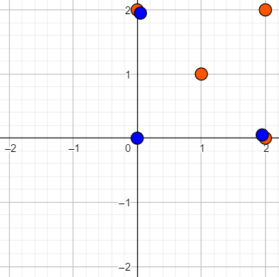 Каждая сверхзвуковая ракета состоит из двух «двигателей». Каждый двигатель представляет собой множество из «источников питания». Первый двигатель состоит из \(n\) источников питания, а второй из \(m\). Источник питания можно представить как точку \((x_i, y_i)\) на 2-D плоскости. Все точки в каждом двигателе различные.