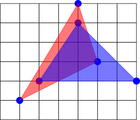 Точка принадлежит треугольнику, если она лежит в треугольнике или на его границе. Два треугольника не пересекаются, если на плоскости нет точки, принадлежащей обоим треугольникам.