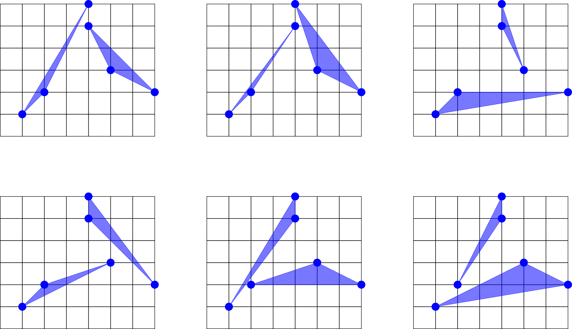 В первом примере есть шесть пар непересекающихся треугольников, они показаны на рисунке ниже.
