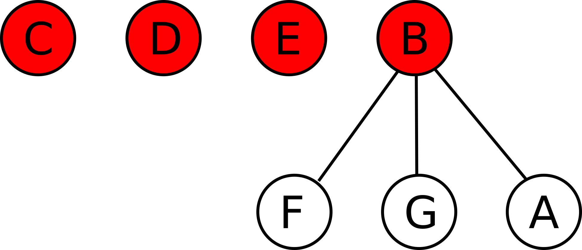 Если же \(B\) приобретет \(A\), то \(B\), \(C\), \(D\), \(E\) будут активными стартапами, \(F\), \(G\), \(A\) будут приобретенными с владельцем \(B\), \(C\), \(D\), \(E\) не будут владеть никаким стартапами: