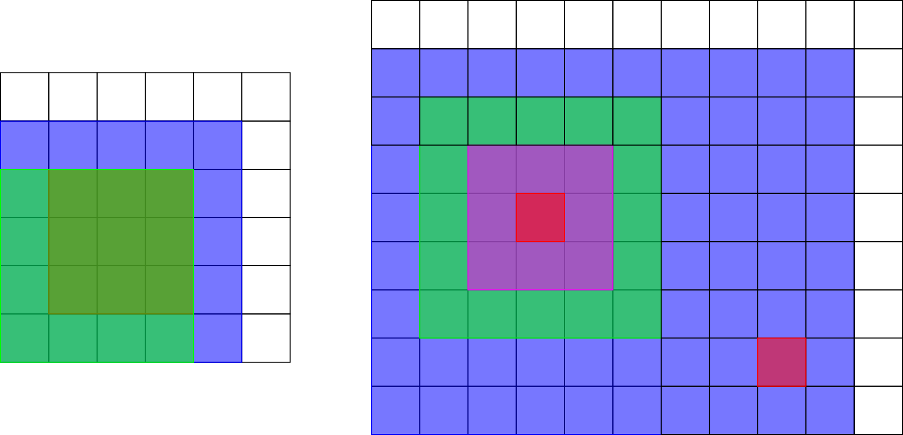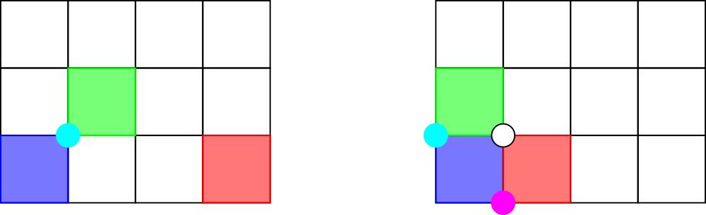Рисунок ниже показывает расположение прямоугольников в первом и втором тестах из примера. Возможные ответы выделены.