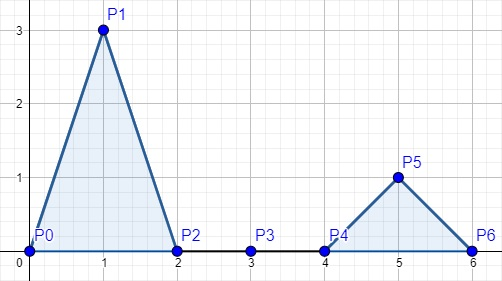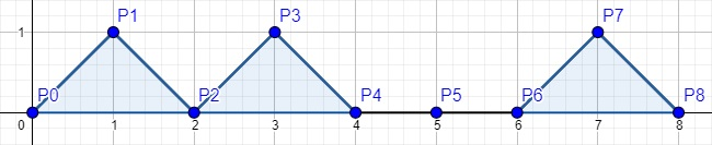 Заданный набор точек является вершинами графика кусочной функции. \(j\)-й кусок функции — отрезок \(P_{j}P_{j + 1}\). За один ход вы можете увеличить на \(1\) \(y\)-координату любой точки с нечетной \(x\)-координатой (то есть точек \(P_1, P_3, \dots, P_{2n-1}\)). Заметьте, что соответствующие отрезки тоже меняются.