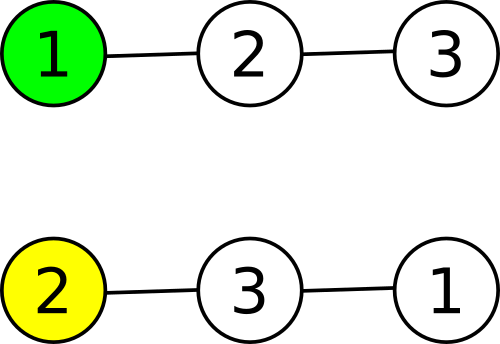В первом примере есть дерево из трех вершин. Сверху расположено дерево в вашей нумерации и поддерево, которое вы выбрали, а внизу расположено дерево пронумерованное Ли Ченом и его поддерево: