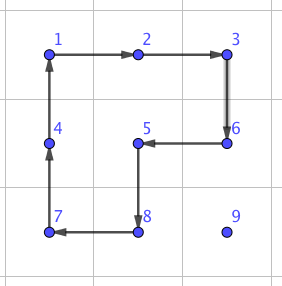 В этом конкретном случае, выбранный цикл может быть представлен как последовательность \([1, 2, 3, 6, 5, 8, 7, 4]\), в которой числа расположены в том направлении, в котором мы хотим их сместить.