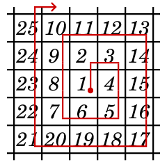Другими словами, мы выбираем все панели, которые нужно перекрасить и находим их номера в бесконечной спирали, центр которой помещен в позицию данного гео-символа. После этого перекрашиваем их в порядке возрастания номеров.