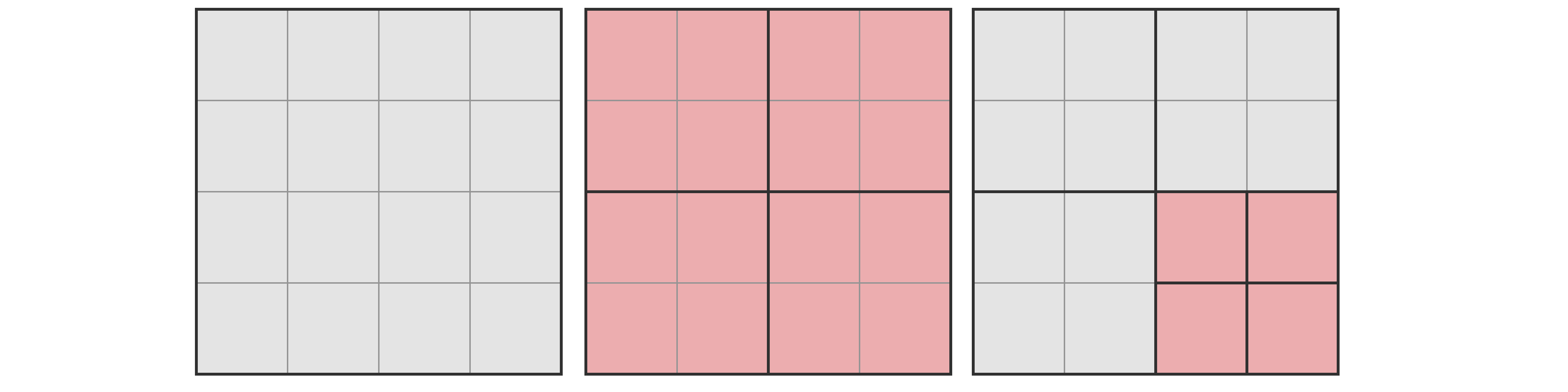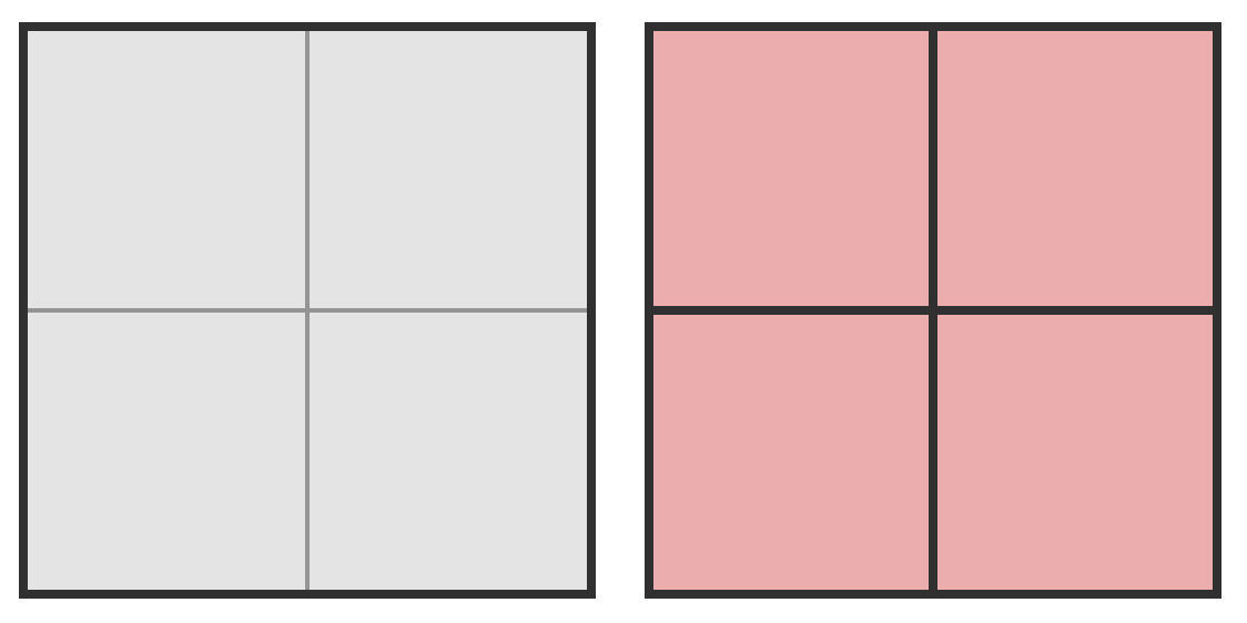 Операция разбиения — операция, во время которой Оля берет некий квадрат со стороной \(a\) и разрезает его на 4 равных квадрата со стороной \(\dfrac{a}{2}\). Если сторона квадрата равна \(1\), то к нему нельзя применить операцию разбиения (смотрите примеры для лучшего понимания).