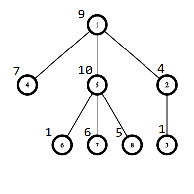 Задано дерево, состоящее ровно из \(n\) вершин. Дерево — это связный неориентированный граф с \(n-1\) ребром. Каждой вершине \(v\) этого дерева соответствует некоторое значение \(a_v\).