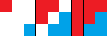 Во втором примере первый игрок «заблокирован», так что он ничего не сможет захватит в течении всей игры. Все остальные игроки будут расширяться наверх в течении первых двух раундов, а на третьем раунде только второй игрок расширится влево.