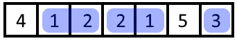 • Количество блоков в наборе максимально возможное. Формально, не существует такого набора блоков \((l_1', r_1'), (l_2', r_2'), \dots, (l_{k'}', r_{k'}')\), который удовлетворяет паре условий выше и \(k' > k\).