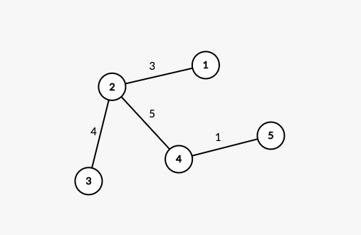 Есть взвешенное дерево с \(n\) вершинами и \(n-1\) ребрами. Вершины пронумерованные от \(1\) до \(n\). Веса ребер — положительные целые числа не превышающее \(100\). Определим расстояние между двумя вершинами как сумму ребер на уникальном пути между ними. Вы хотели бы найти диаметр дерева. Диаметр — это максимальное расстояние между вершинами.