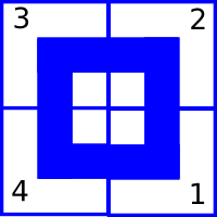 В каждой клетке Джон хочет нарисовать фрагмент трубы. Он умеет рисовать фрагменты четырех типов, которые нумеруются от 1 до 4 как показано на картинке: