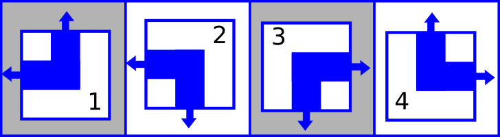 Каждый фрагмент трубы имеет два конца, они обозначены стрелками на картинке. Например, концы фрагмента номер 1 направлены влево и вверх.