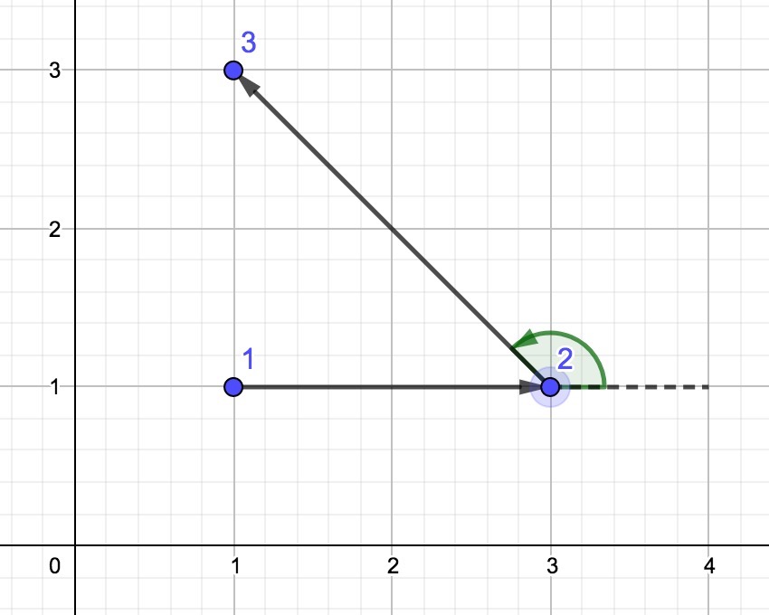 Как мы видим, эта ломаная несамопересекающаяся, а также извилистая, так как поворот в точке \(2\) налево.