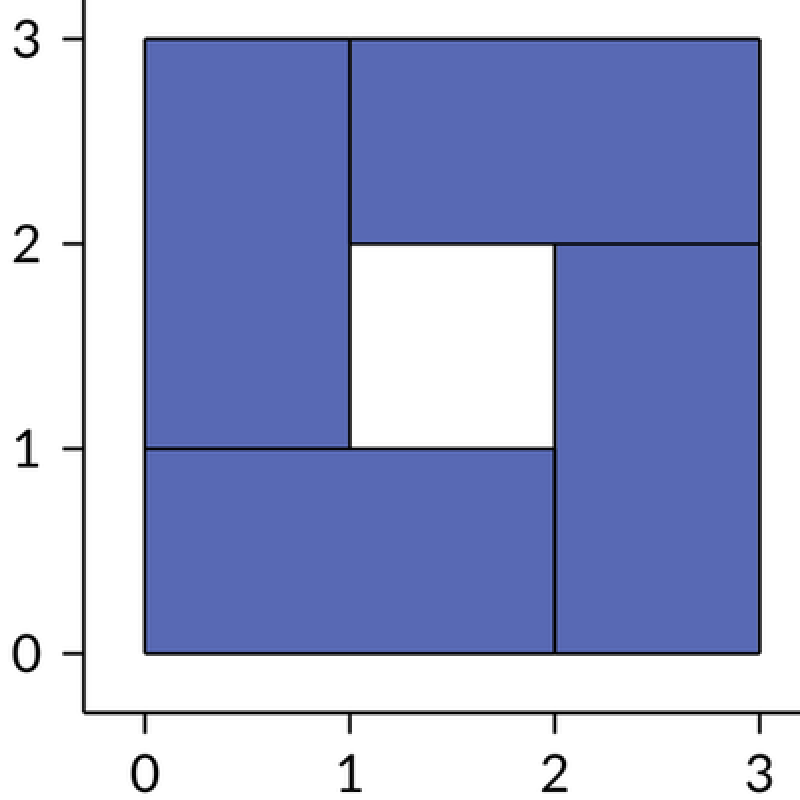 Изначально, до появления Байтландии, на её территории были расположены \(n\) различных стран. Каждое государство владело своей территорией, которую можно было представить на карте как прямоугольник, стороны которого параллельны осям координат, а вершины расположены в целочисленных точках. Никакие две страны не пересекались, однако они могли касаться сторонами. Иногда в результате агрессивных переговоров и мирных военных походов две страны объединялись в одну. Слияние происходило только в том случае, если после объединения их владений снова получалась прямоугольная территория. В конце концов осталось только одно государство — Байтландия.