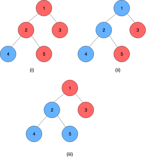 - Обозначим за \(b\) количество синих непосредственных детей, и за \(r\) количество красных непосредственных детей данной вершины.