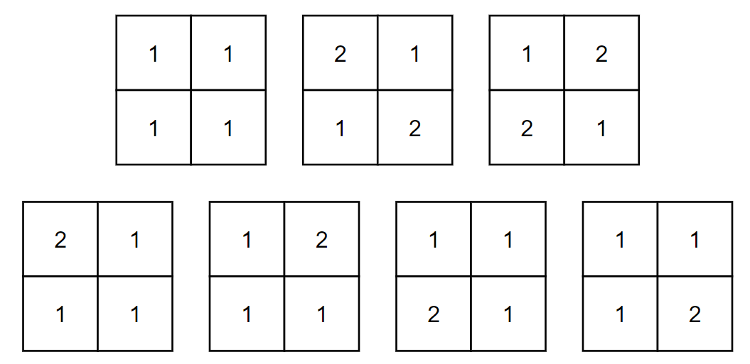 Найдите количество способов расставить числа в клетках. Так как ответ может быть очень большой, найдите его по модулю \((10^{9} + 7)\).