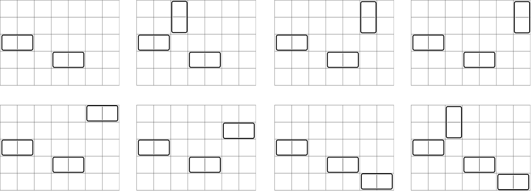 Вот \(8\) способов разместить ноль или более дополнительных костяшек, чтобы расположение осталось идеально сбалансированным: