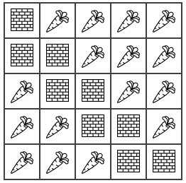 Now you need to create a list of commands for the robot so that it waters all the plants and doesn't water any cell containing a slab. Since it's only a beta version of "SmartGarden", the total number of commands shouldn't exceed \(50\).