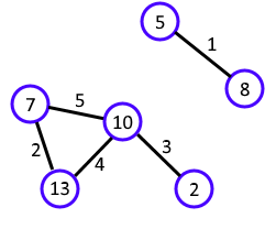 The picture shows a circuit board with \(5\) wires. Contact points with numbers \(2, 5, 7, 8, 10, 13\) are used. Here an electrical signal can pass from wire \(2\) to wire \(3\), but not to wire \(1\). Currently the circuit board is broken. Polycarpus thinks that the board could be fixed if the wires were re-soldered so that a signal could pass between any pair of wires.