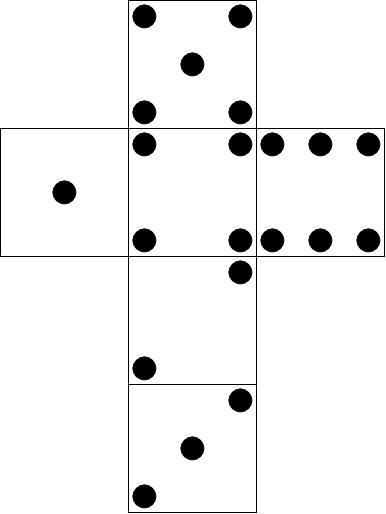 Боб играет со стандартными \(6\)-гранными костями (кубиками). Развертка стандартного кубика приведена на рисунке ниже.