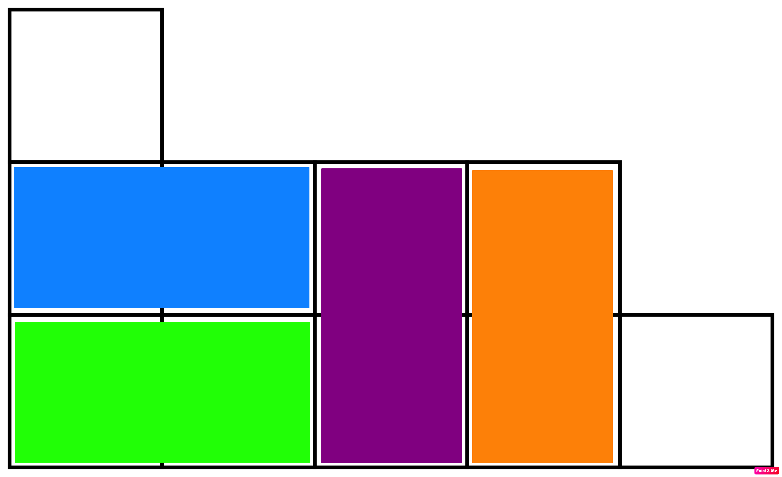 Диаграмма Юнга для \(a=[3,2,2,2,1]\). Ваша задача — найти наибольшее количество непересекающихся домино, которое вы можете нарисовать внутри этой диаграммы, домино это прямоугольник \(1 \times 2\) или \(2 \times 1\).