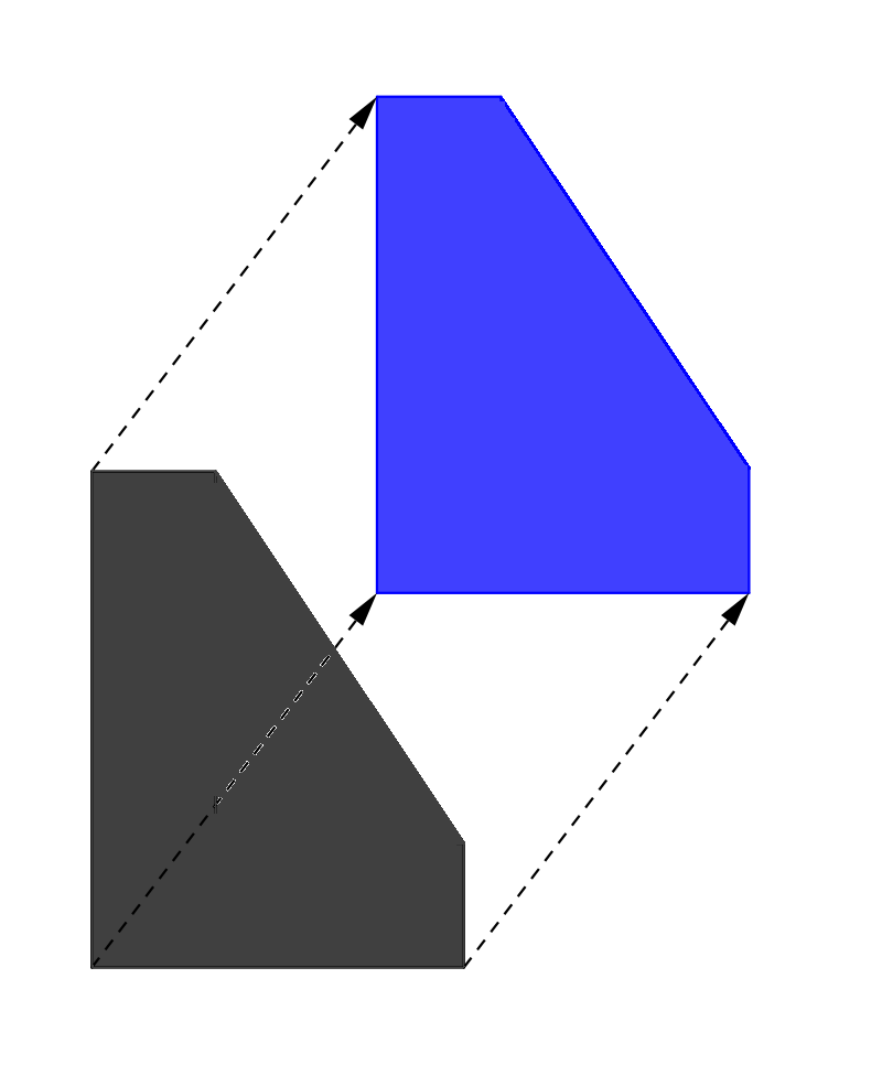 Вам дан строго выпуклый (т. е. никакие три вершины не лежат на одной прямой) многоугольник \(P\), заданный координатами его точек на плоскости. Обозначим как \(P(x,y)\) многоугольник, полученный параллельным переносом \(P\) на вектор \(\overrightarrow {(x,y)}\). Следующий рисунок показывает пример параллельного переноса: