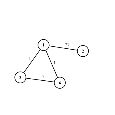 В первом примере в графе нет нетривиальных циклов со стоимостью \(0\), так что мы можем как удалить единственное ребро, инцидентное вершине \(1\), так и не удалять.
