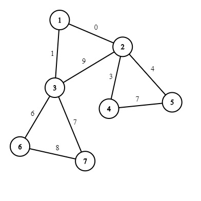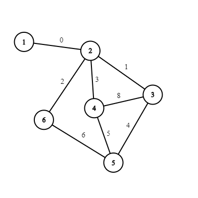 Вам дан простой взвешенный неориентированный связный граф из \(n\) вершин и \(m\) рёбер со следующим ограничением: не существует простого цикла (т. е. цикла, проходящего через каждую вершину не больше раза) длины больше \(3\), проходящего через вершину \(1\). Стоимостью пути (необязательно простого) в этом графе является XOR весов всех рёбер, входящих в этот путь, причём каждое ребро считается столько, сколько раз через него проходит путь.