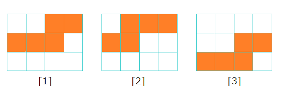 Например, на картинке неделя состоит из \(4\) дней и Алиса закрашивает \(5\) последовательных дней. [1] и [2] имеют различную форму, но [1] и [3] имеют одинаковую форму.