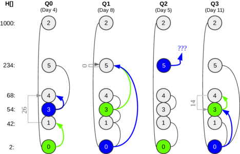 On the next line \(N\) space separated integers will follow, the \(i\)th \((1\leq i \leq N)\) of which being \(H_{i-1}\) \((0\leq H_{i-1} \leq 10^9)\), the altitude of shaman \(i-1\).