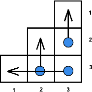На рисунке изображена лесенка порядка три. Стрелочками показано какие кратчайшие пути выбирают спортсмены.