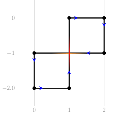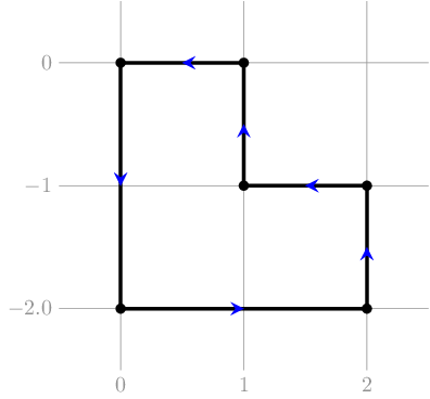 Обратите внимание, что все отрезки этой ломаной должны быть параллельны осям координат, при этом после горизонтального отрезка должен идти вертикальный, и наоборот. Все координаты не должны превосходить \(10^9\) по абсолютной величине.