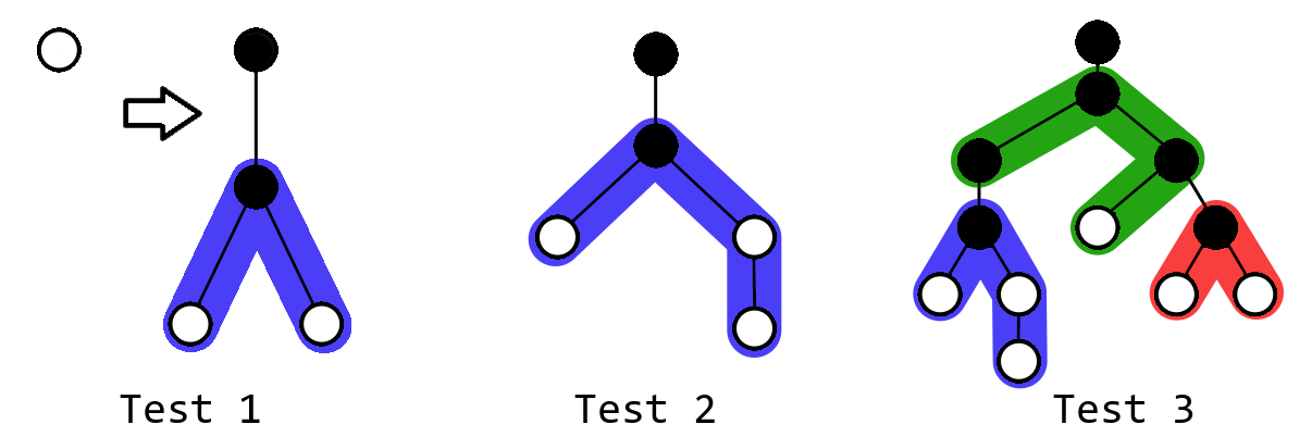 - Изначально дерево содержит только одну вершину, которая является корневой и белой.