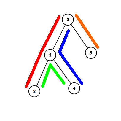 У вас есть дерево из \(n\) вершин, а также \(m\) простых вершинных путей. Ваша задача — найти, сколько пар этих путей пересекаются по ровно одной вершине. Более формально, вам нужно найти число пар \((i, j)\) \((1 \leq i < j \leq m)\) таких, что \(path_i\) и \(path_j\) имеют ровно одну общую вершину.