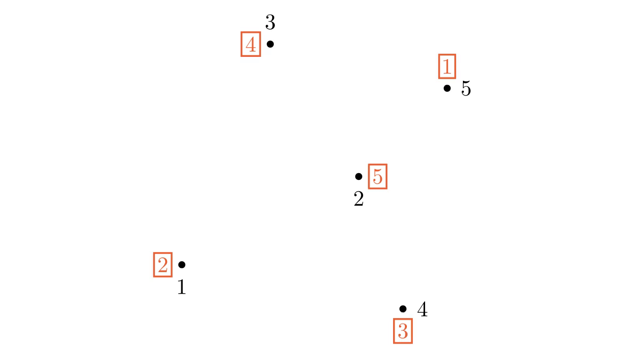 Следующая анимация демонстрирует первый пример. Черные числа обозначают номера точек, а оранжевые — их метки.