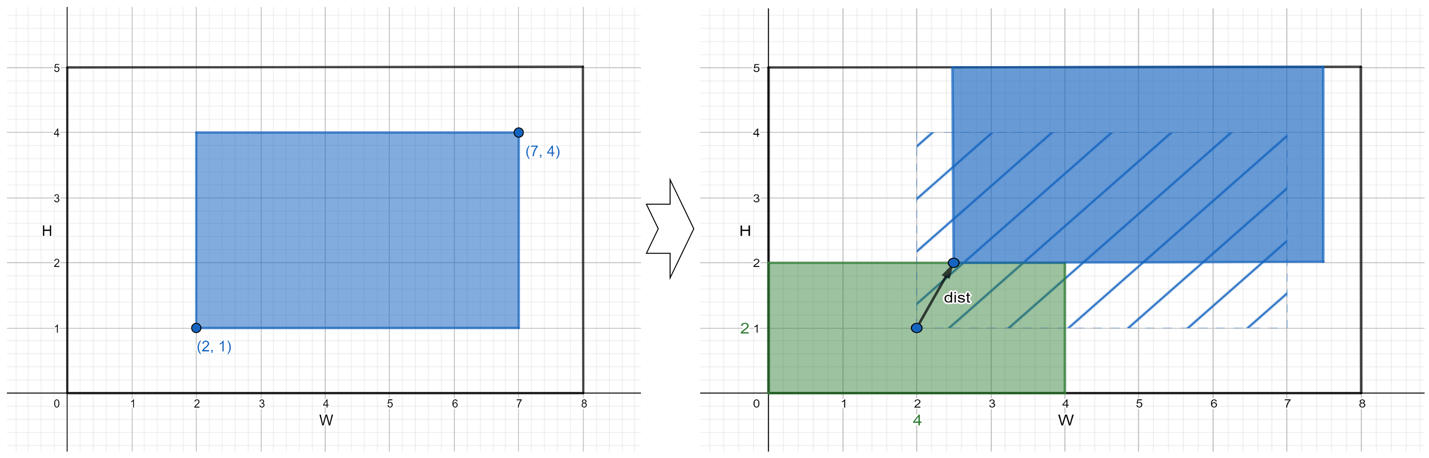 В третьем наборе входных данных можно сместить стол на вектор \((0, 2)\), чтобы левый нижний угол переместился из \((0, 3)\) в \((0, 5)\).