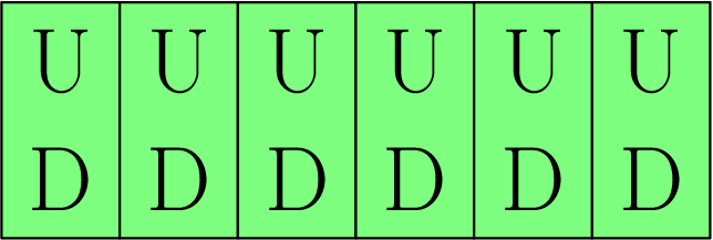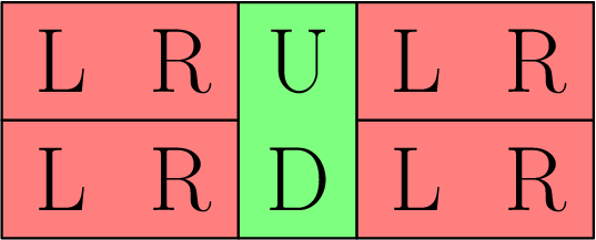 У Алисы есть клеточная доска из \(2\) рядов и \(n\) столбцов. Она полностью покрыла доску с помощью \(n\) доминошек размера \(1 \times 2\) — Алиса могла класть их как вертикально, так и горизонтально, и каждая клетка доски была покрыта ровно одной доминошкой.